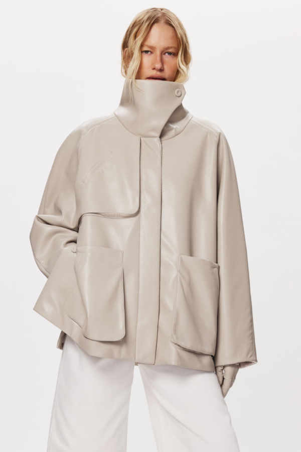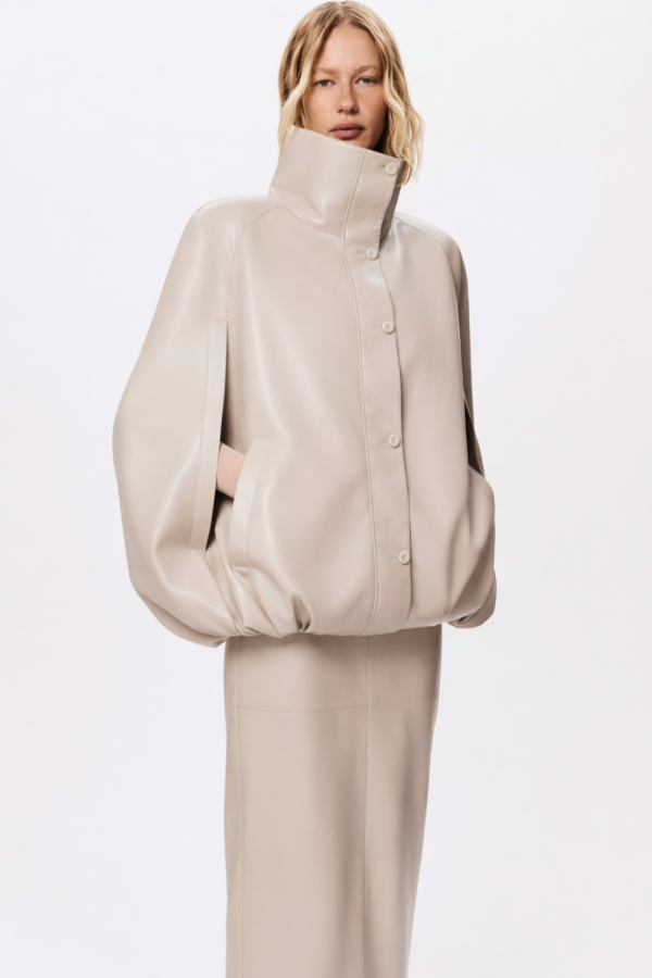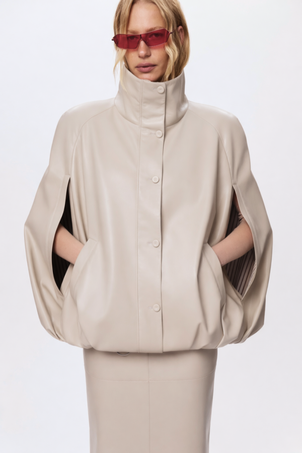 Бомбер-кейп з екошкіри з високим коміром