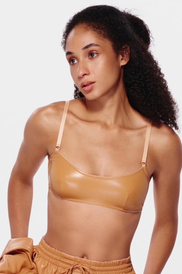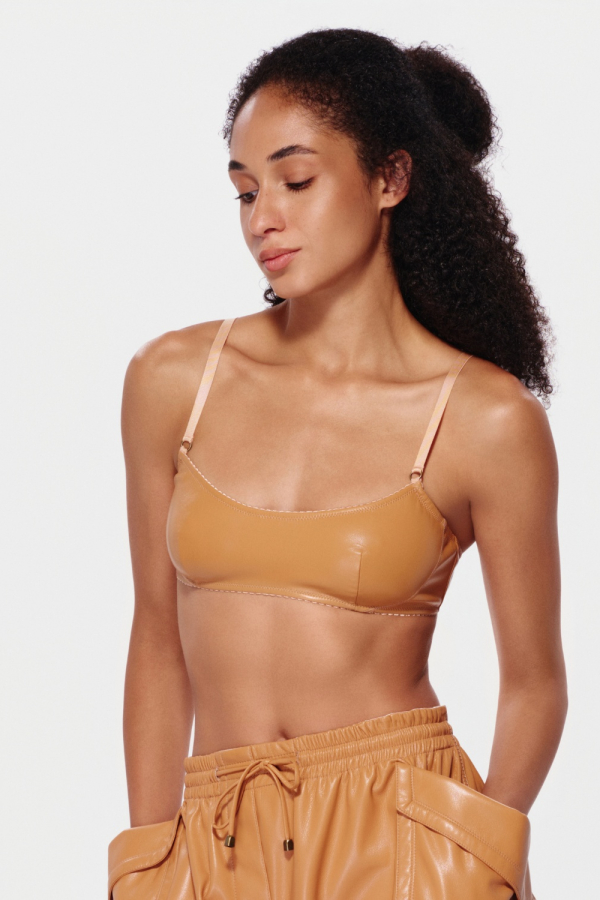 Топ з екошкіри на бретелях