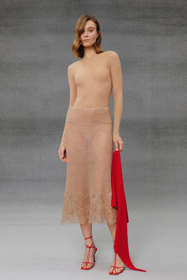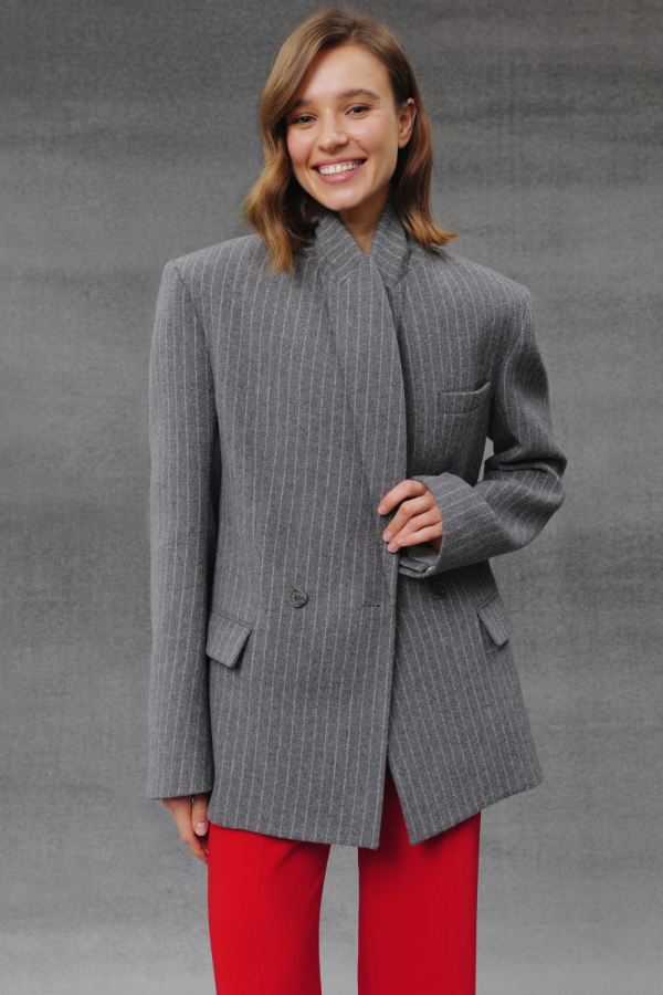 Шарф-хустинка — акцент, що легко змінює настрій образу. Її можна носити на плечах, зав’язувати на талії, використовувати як пояс або стилізувати поверх жакета чи пальта. М’яка лінія драпірування додає руху й підкреслює силует. Деталь, що працює на варіативність і дозволяє щоразу створювати нову інтерпретацію образу.